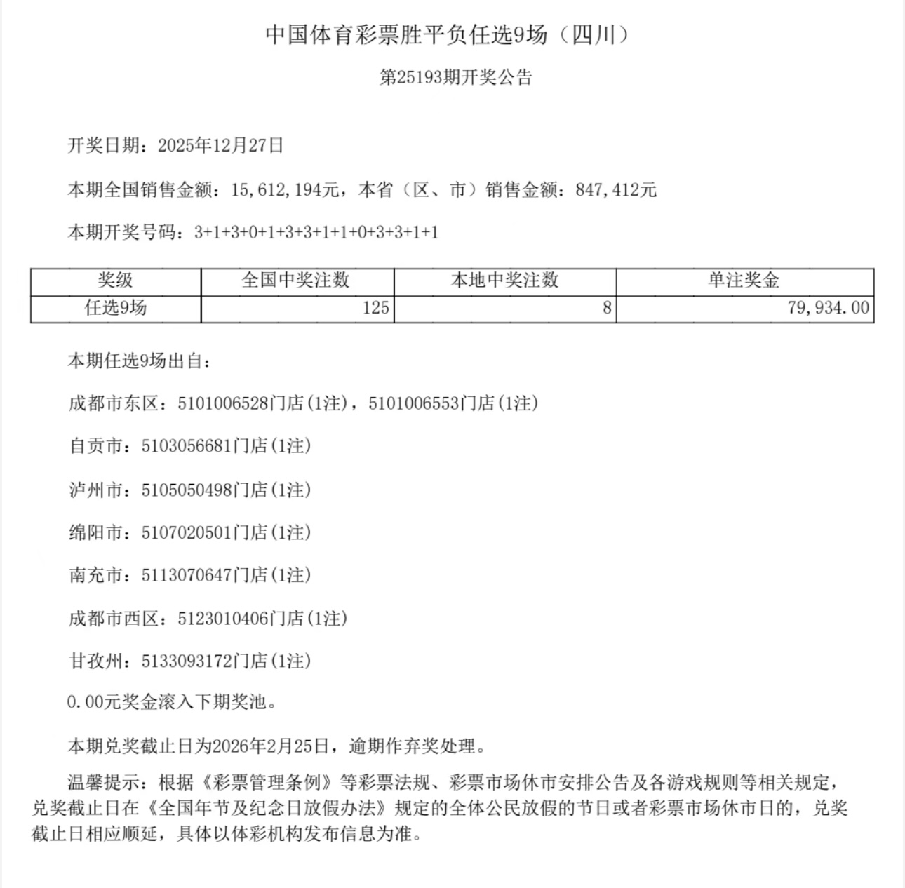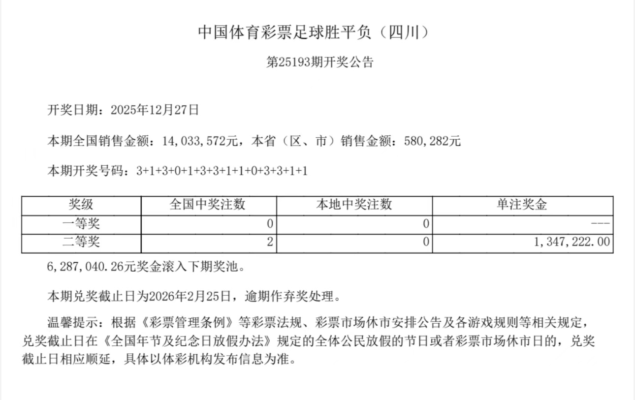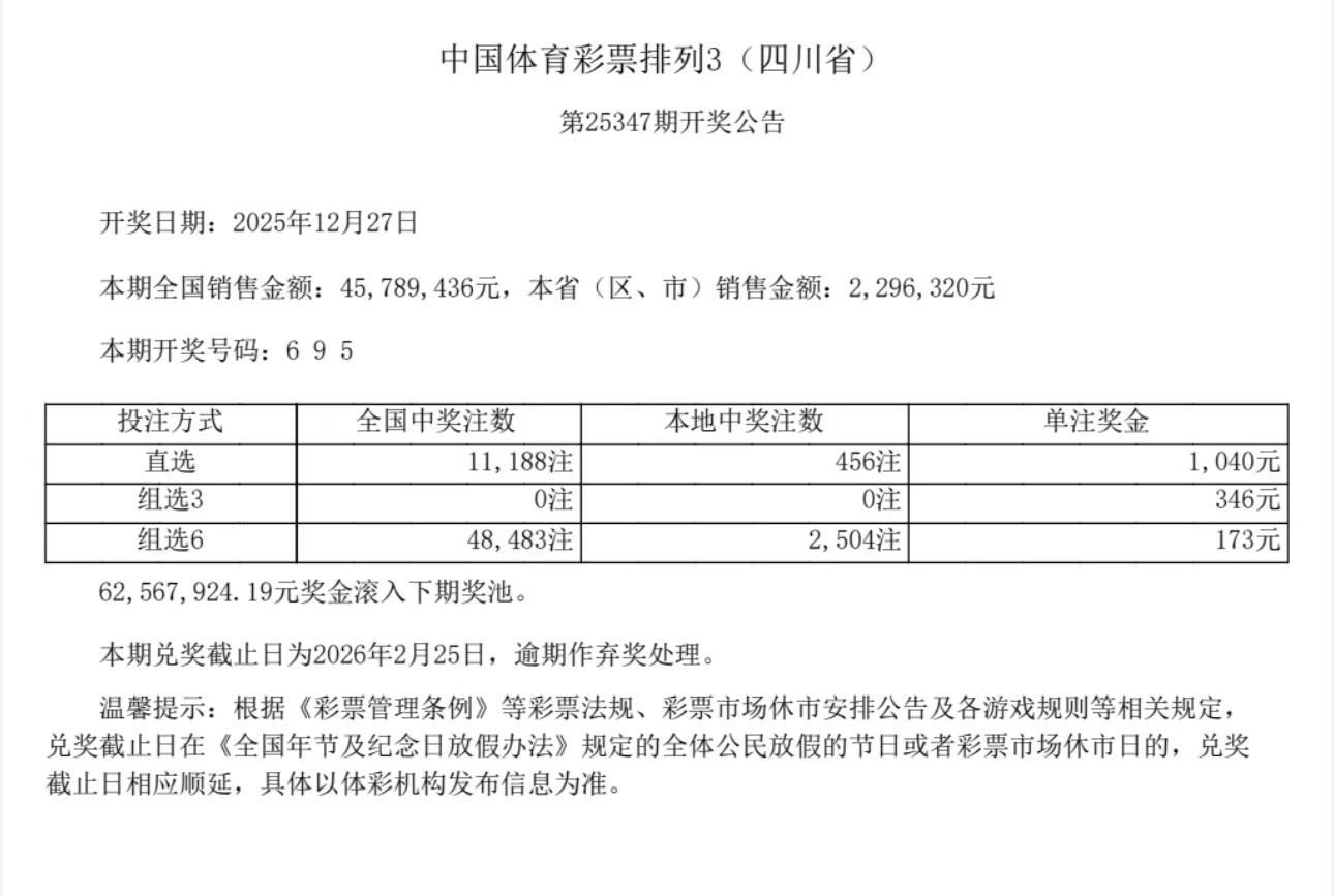配资排名第一 中国体育彩票12月27日开奖结果