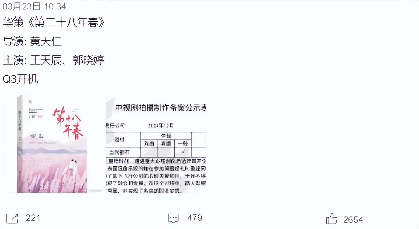 各位读者,你们期待王天辰和郭晓婷合作拍摄《第二十八春》吗?